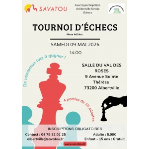 Savatou organise, avec le club d'échecs d'Albertville la 4ème édition de son tournoi d'échecs le 9/05/26